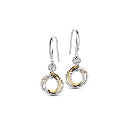 Zilveren dubbele ketting met bicolor hanger gezet met zirconium