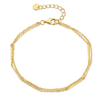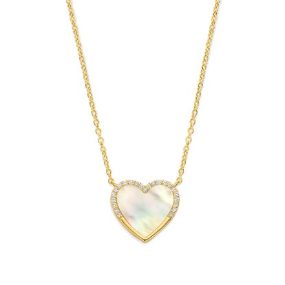 Zilveren dubbele halsketting met hanger hart gezet met zirconium