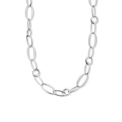 Zilveren ketting en hanger met blauwe en witte zirconium