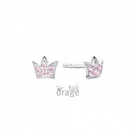 Zilver oorstekers kroon roze