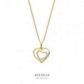 18K geel gouden hanger hartje met zirconium 1.6cm hoog (zonder ketting)