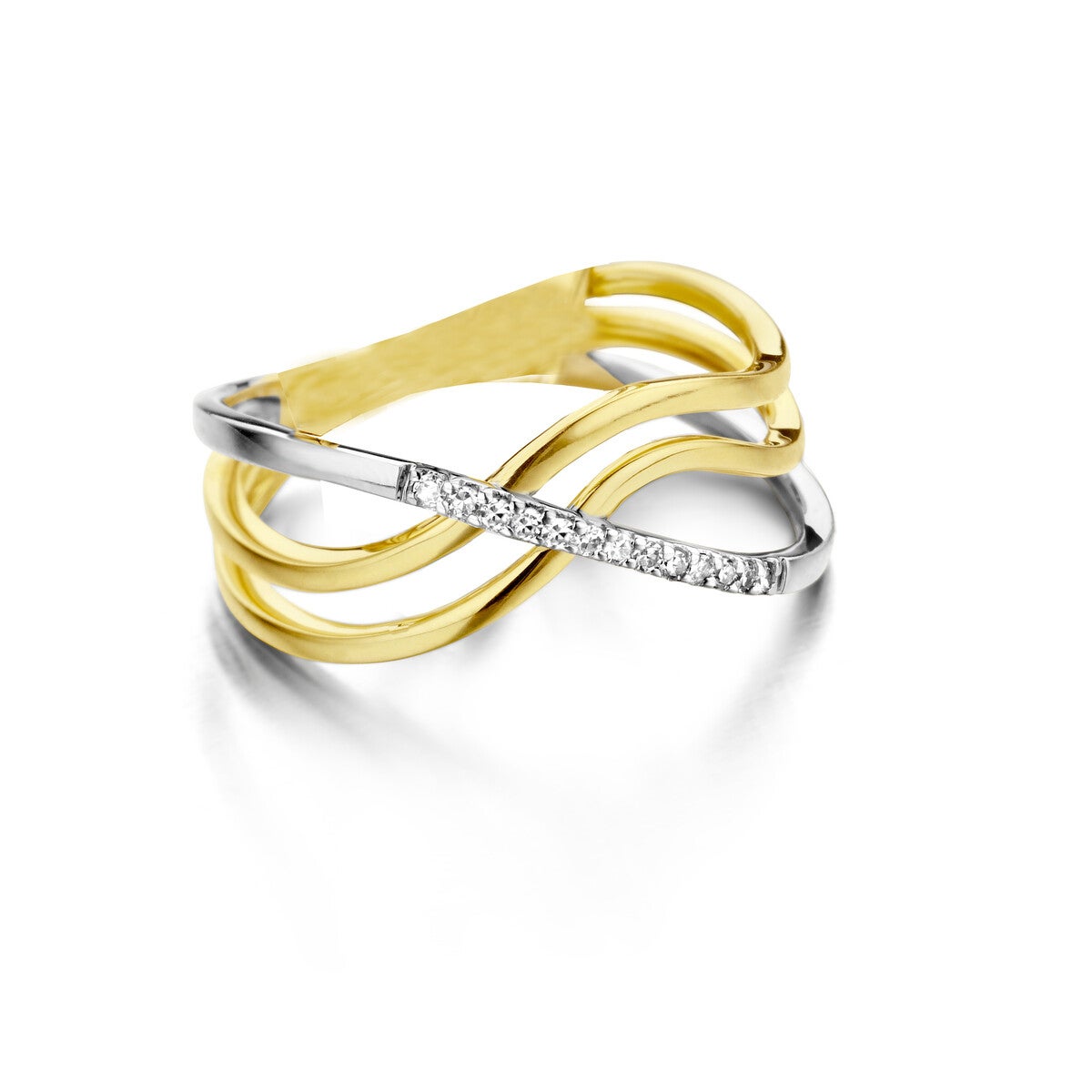 18 Karaat geel en wit goud, 0.065ct briljant maat 53