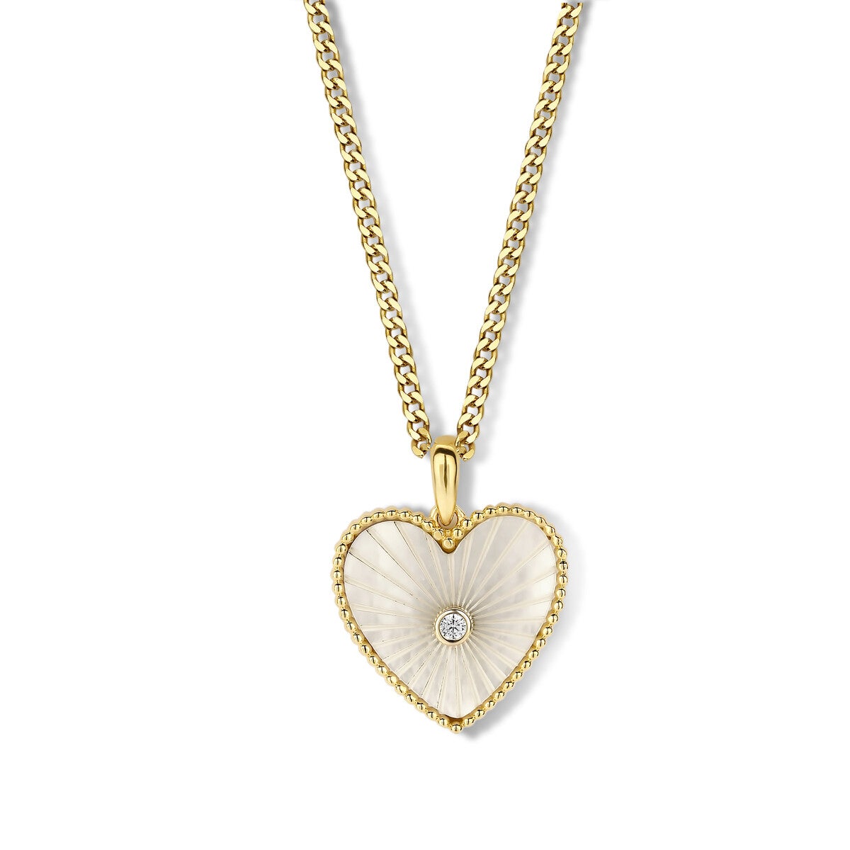 Zilver vergulde ketting en hanger met parelmoer en zirconium